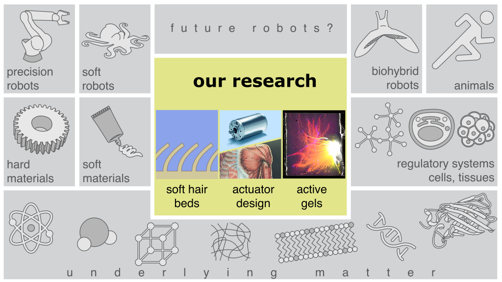 Our lab studies physical model systems which mimic living systems. This approach is similar to that of aerospace engineers, who study the performance of model airplanes when designing new aircraft. Our goal is to uncover the mechanical design principles of living systems by building up the complexity of our physical model systems. By studying model systems, we not only better understand the mechanics that govern living systems, but also develop novel engineering applications inspired by nature.